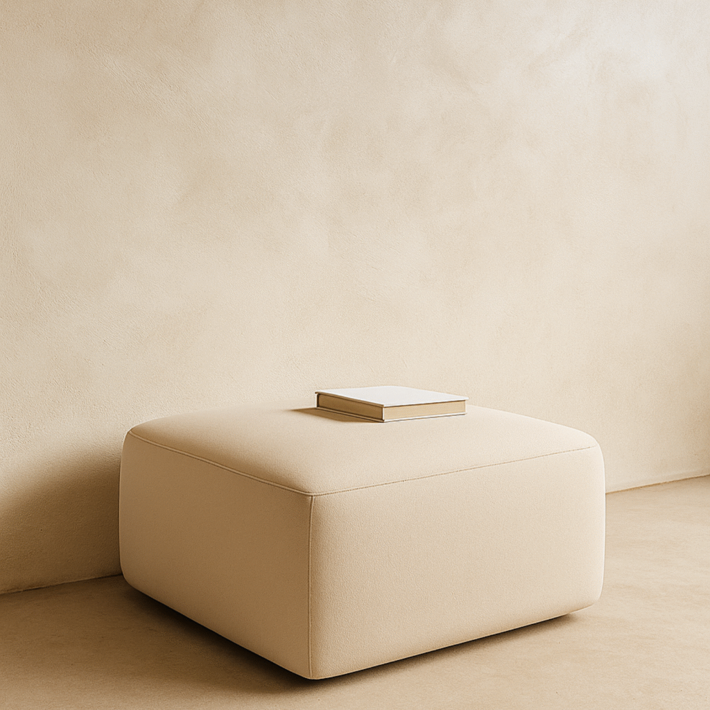 Duży format i niska, pełna podstawa zapewniają stabilność. Pufa nie ucieka przy użytkowaniu, a miękko zaoblone narożniki zwiększają bezpieczeństwo w codziennym ruchu domowym.