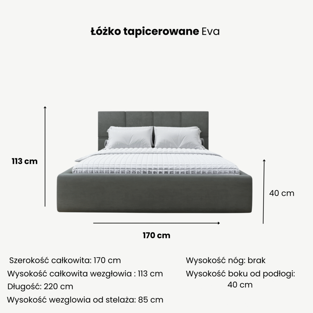 Łóżko tapicerowane Eva to doskonały wybór dla osób, które szukają eleganckiego, praktycznego i solidnego wyposażenia sypialni.