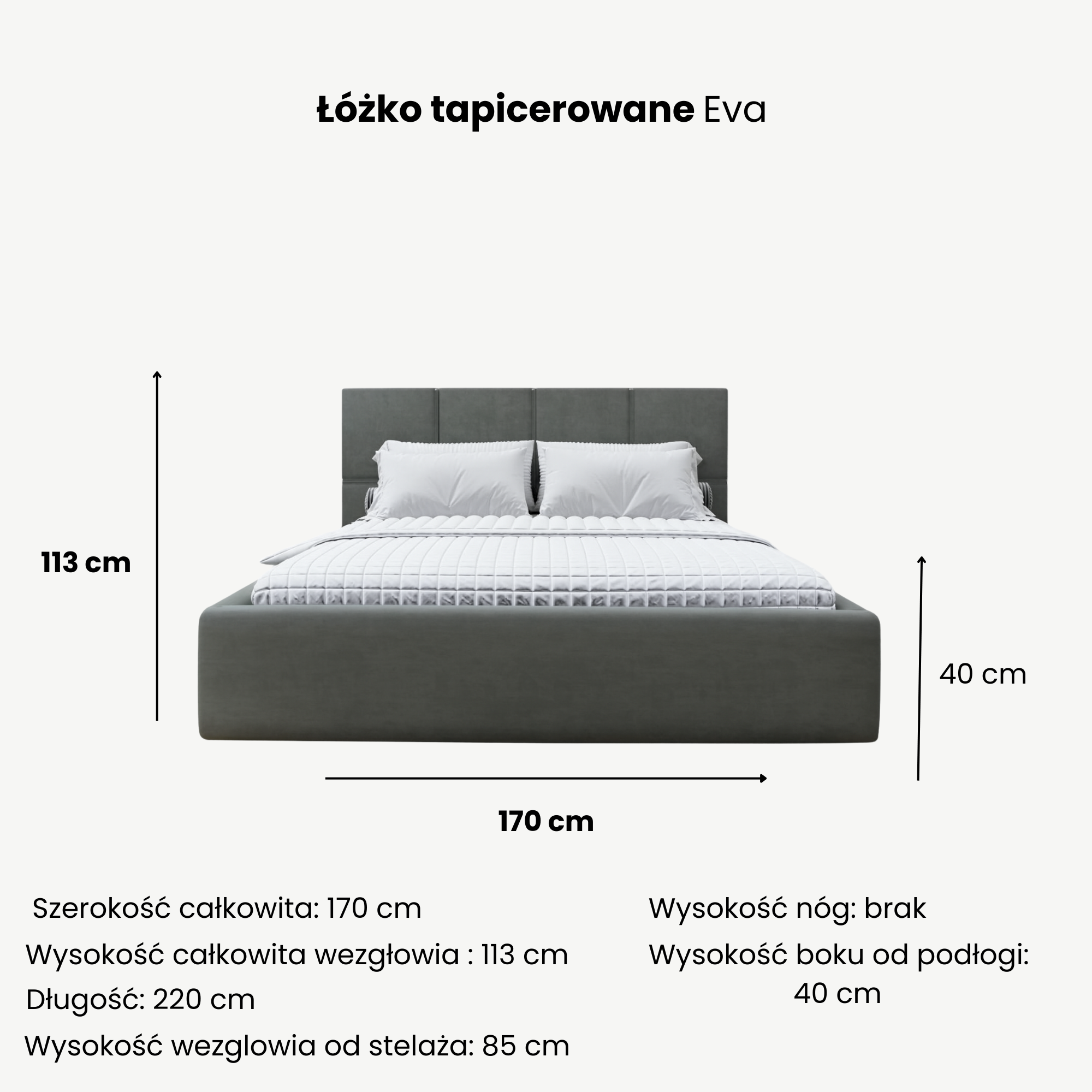 | Wysokość wezgłowia od stelaża | 85 cm |