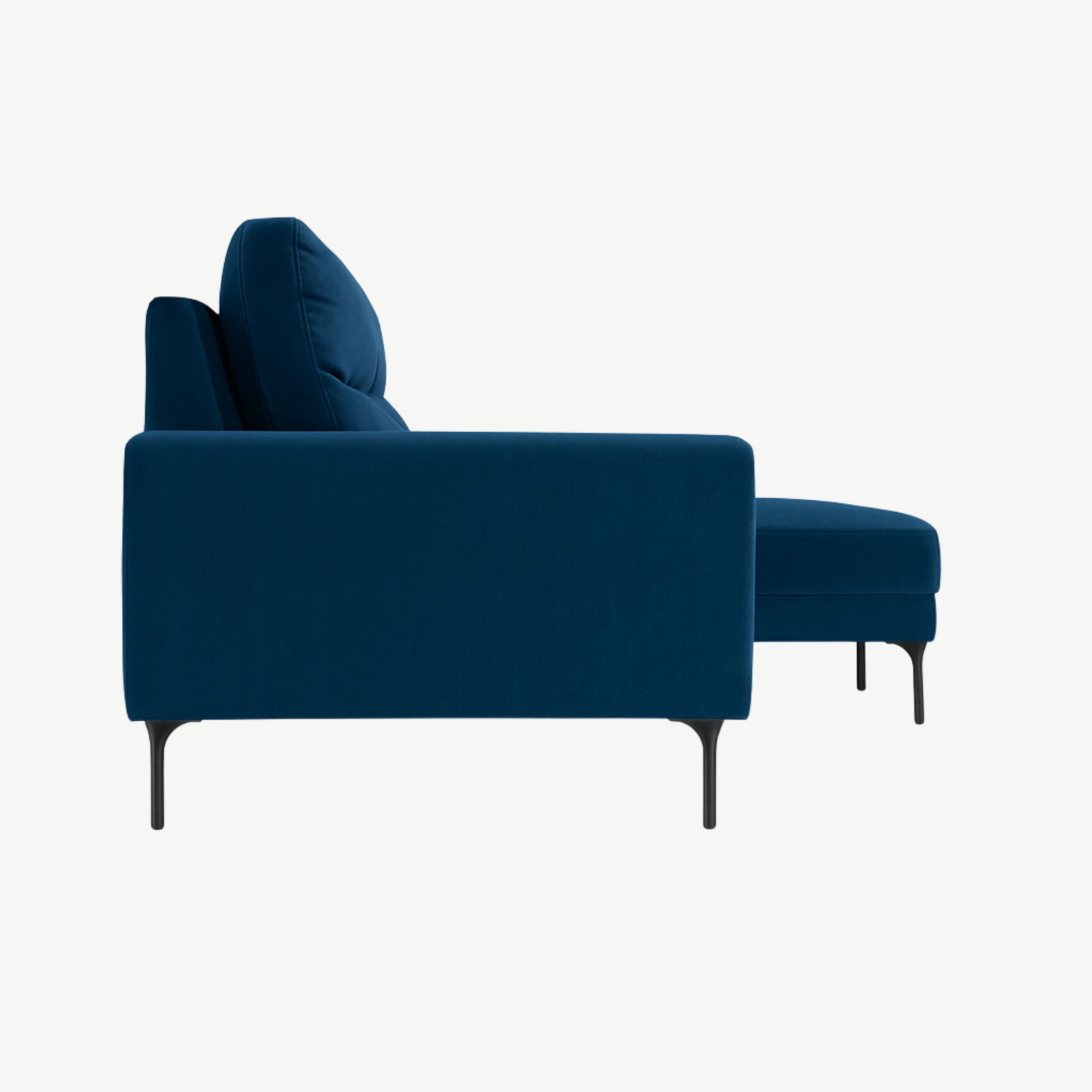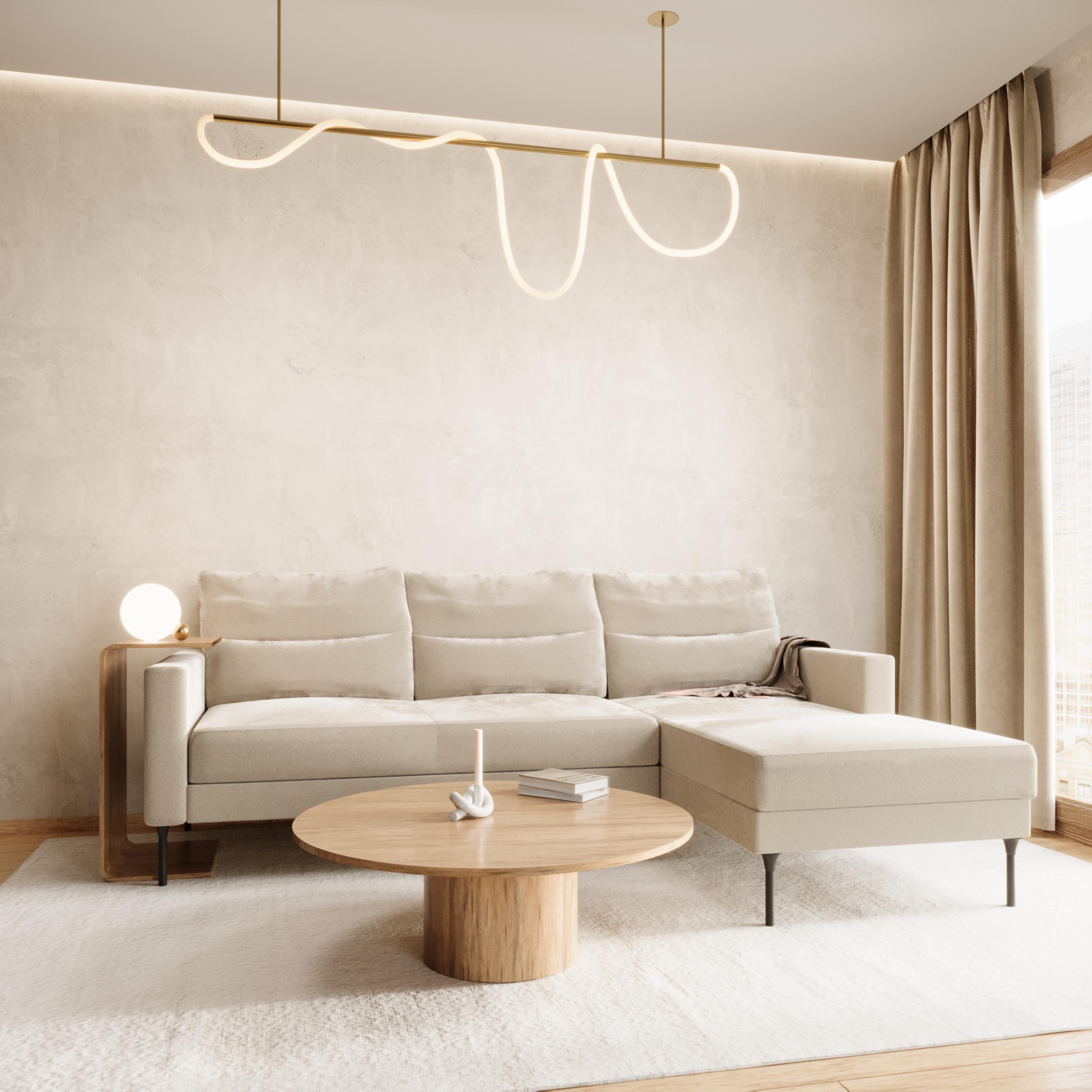 Sofia została zaprojektowana z myślą o wygodnym odpoczynku i estetycznej spójności salonu. Wydłużony szezlong zachęca do relaksu z książką lub filmem, a odpowiednio wyprofilowane poduchy oparciowe dbają o komfort pleców. Prosta bryła ze smukłymi nogami nadaje wnętrzu lekkości i porządkuje przestrzeń. Ten narożnik świetnie odnajdzie się w aranżacjach nowoczesnych, skandynawskich i eklektycznych