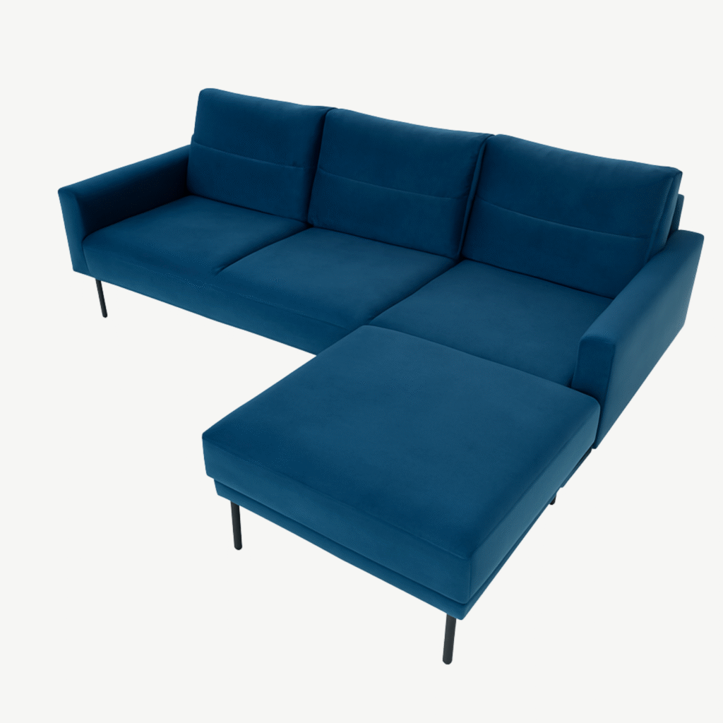 Narożnik Sofia to elegancki narożnik z szezlongiem, który łączy lekką, nowoczesną formę z wygodą codziennego wypoczynku. Smukłe nogi, równe przeszycia i bogata paleta tkanin ułatwiają aranżację w każdym salonie.