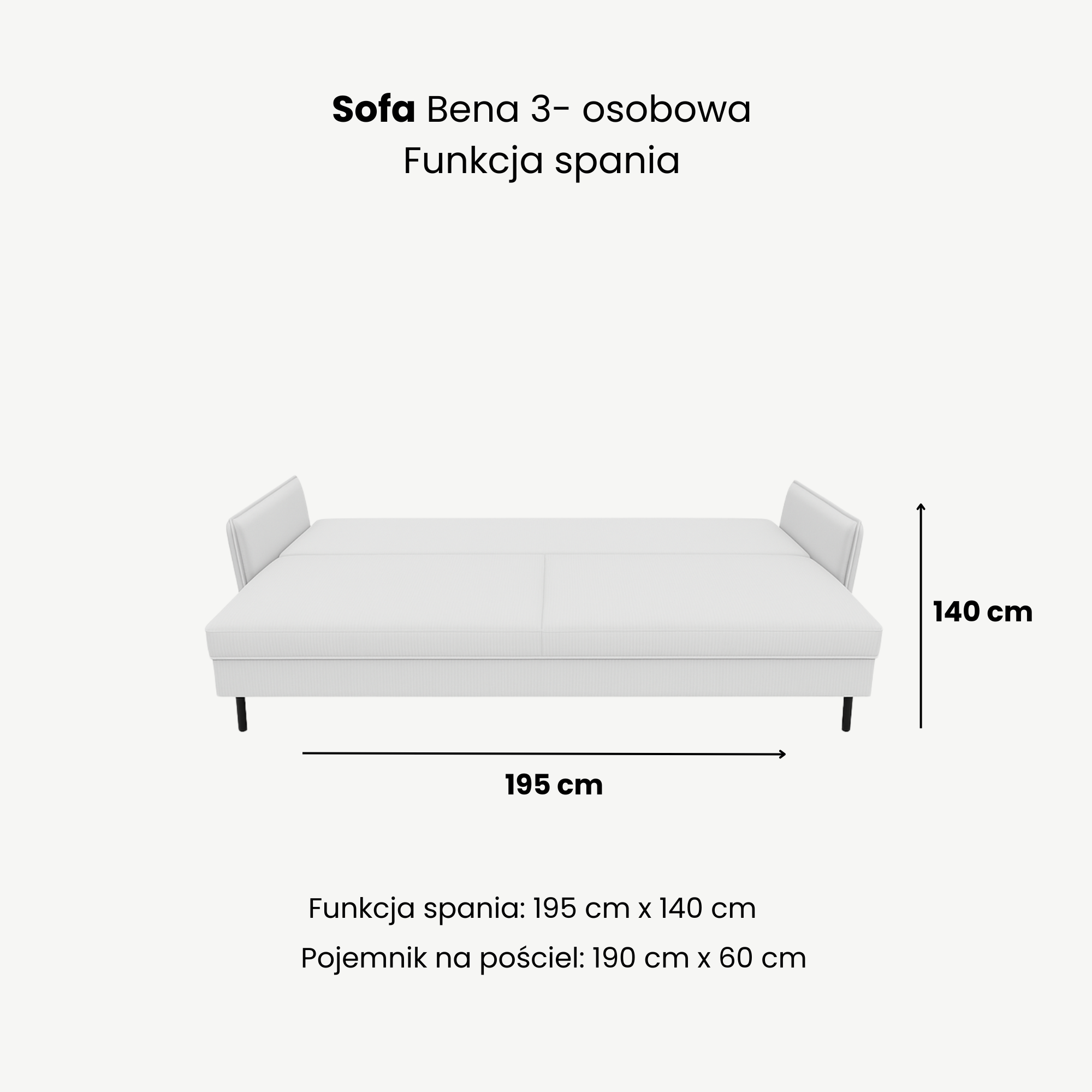 | Wymiary funkcji spania | 195 x 140 cm |