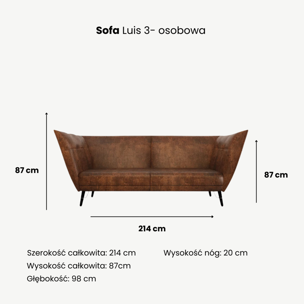 Sofa Luis to mebel, który łączy elegancki wygląd z praktycznym zastosowaniem. Doskonale sprawdzi się jako centralny punkt domowej strefy wypoczynku, tworząc miejsce zachęcające do relaksu, rozmów i spędzania czasu z bliskimi.