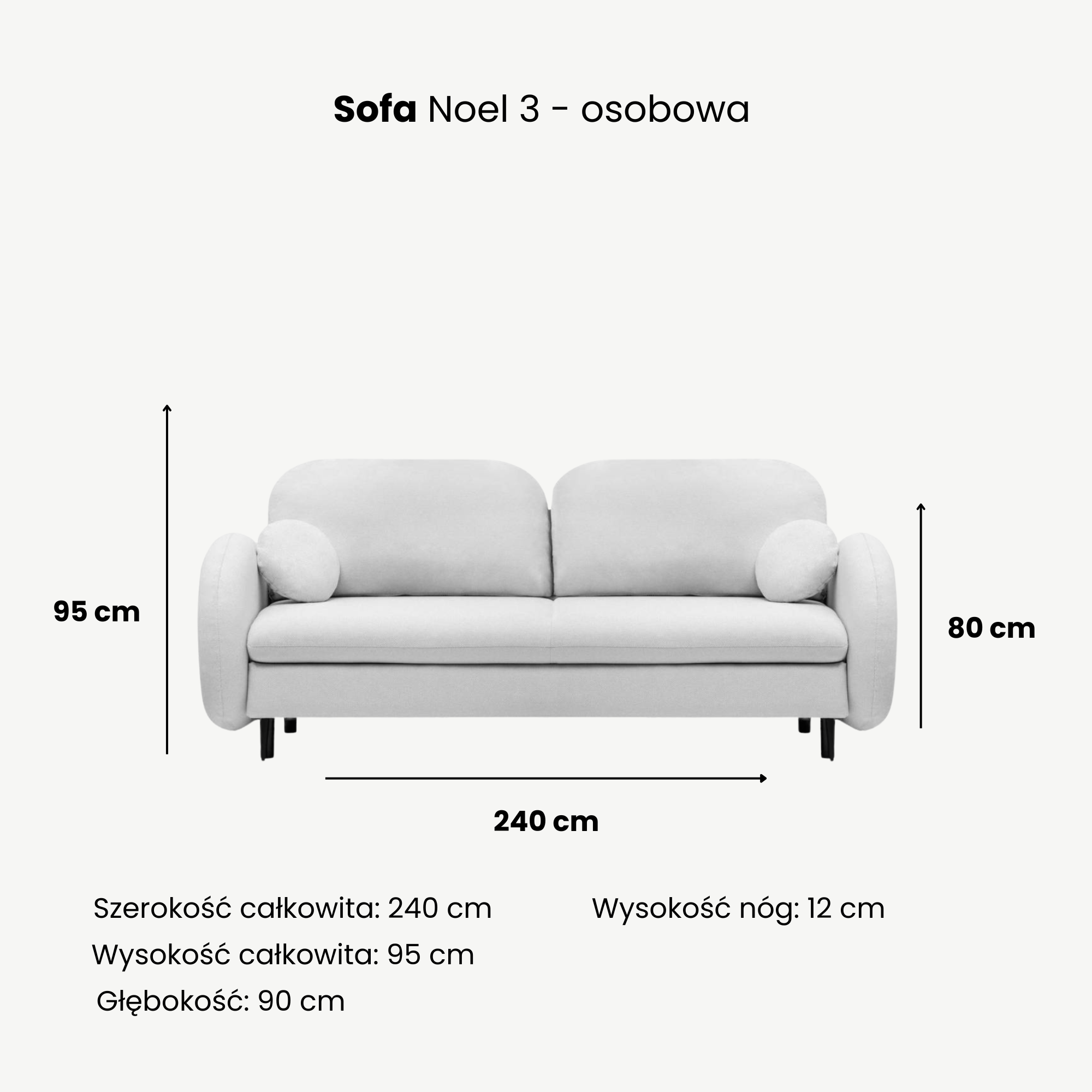 Sofa Noel to nowoczesna sofa rozkładana z pojemnikiem na pościel. Jednym płynnym ruchem zmienisz ją w wygodne łóżko z równą powierzchnią spania. Prosta forma ułatwia aranżację, a tkaniny i kolory dobierzesz do wystroju wnętrza.